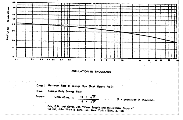 SUBTITLE C: WATER POLLUTION CHAPTER II: ENVIRONMENTAL PROTECTION AGENCY PART 370 ILLINOIS RECOMMENDED STANDARDS FOR SEWAGE WORKS SECTION 370.APPENDIX D FIGURE NO. 1 - DESIGN OF SEWERS RATIO OF PEAK FLOW TO DAILY AVERAGE FLOW Section 370.APPENDIX D Figure No. 1 - Design of Sewers – Ratio of Peak Flow to Daily Average Flow