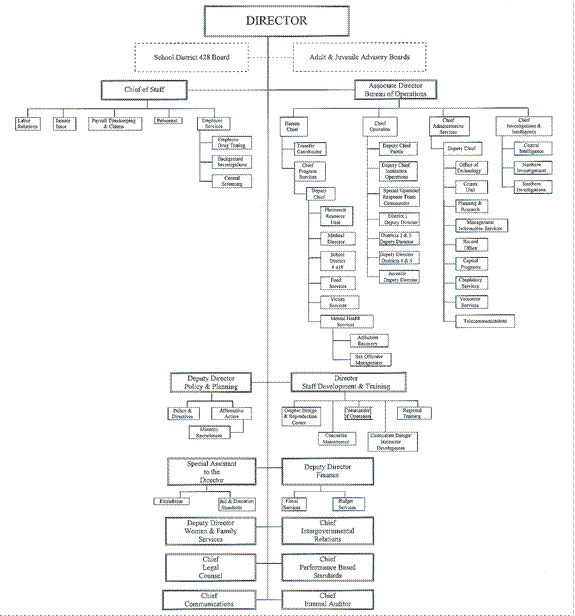 SUBTITLE D: CODE DEPARTMENTS CHAPTER VII: DEPARTMENT OF CORRECTIONS PART 850 PUBLIC INFORMATION, RULEMAKING AND ORGANIZATION SECTION 850.TABLE A DEPARTMENT ORGANIZATION Section 850.TABLE A Department Organization