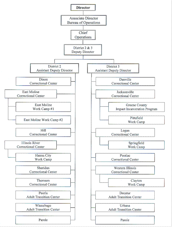 SUBTITLE D: CODE DEPARTMENTS CHAPTER VII: DEPARTMENT OF CORRECTIONS PART 850 PUBLIC INFORMATION, RULEMAKING AND ORGANIZATION SECTION 850.TABLE J BUREAU OF OPERATIONS, DISTRICTS 2 & 3 ORGANIZATION Section 850.TABLE J Bureau of Operations, Districts 2 & 3 Organization