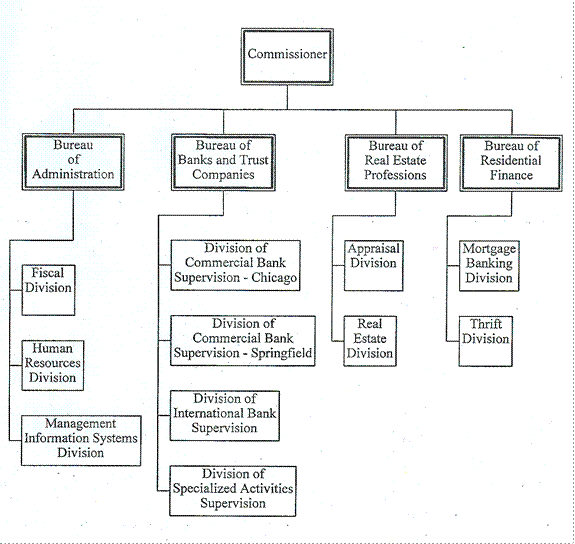 SUBTITLE E: MISCELLANEOUS STATE AGENCIES CHAPTER XXXIII: OFFICE OF BANKS AND REAL ESTATE PART 2300 PUBLIC INFORMATION, RULEMAKING AND ORGANIZATION SECTION 2300.APPENDIX B FLOW CHART OF AGENCY ORGANIZATION