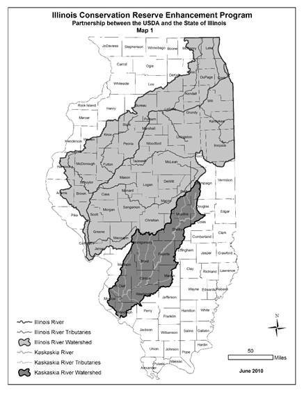 CHAPTER I: DEPARTMENT OF NATURAL RESOURCES SUBCHAPTER d: FORESTRY PART 1515 CONSERVATION RESERVE ENHANCEMENT PROGRAM (CREP) SECTION 1515.EXHIBIT A MAP OF ELIGIBLE AREA IN ILLINOIS AND KASKASKIA RIVER WATERSHEDS Section 1515.EXHIBIT A Map of Eligible Area in Illinois and Kaskaskia River Watersheds