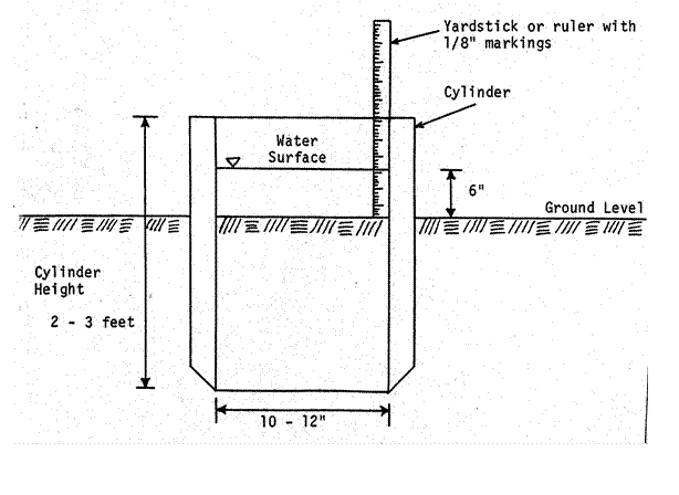 Drive a rigid, leak-proof container approximately 6 inches into the ground taking car to avoid disturbing the soil as much as possible. This container should be approximately 2 feet long by at least 10 inches wide, and may be of any suitable material. A metal pipe is recommended (see Figure 1).