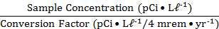 Conversion Factor Radionuclide (Isotopic Symbol) (pCi•L‑1/4 mrem•y‑1)