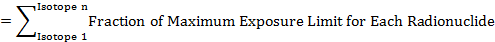 The supplier then sums the fractional contributions for all radionuclides to determine the total fraction of the maximum exposure limit: