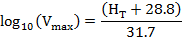 4) The maximum allowed velocity in m/s, Vmax, for a flare complying with subsection (d)(4)(C) must be determined by the following equation: