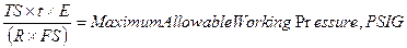 1) The maximum allowable working pressure on the shell of a nonstandard boiler shall be determined by the strength of the weakest section of the structure, computed from the thickness of the plate, the tensile strength of the plate, the efficiency of the longitudinal joint or tube ligaments, the inside diameter of the weakest course and the factor of safety permitted below.