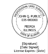 CHAPTER VII: DEPARTMENT OF FINANCIAL AND PROFESSIONAL REGULATION SUBCHAPTER b: PROFESSIONS AND OCCUPATIONS PART 1270 ILLINOIS PROFESSIONAL LAND SURVEYOR ACT OF 1989 SECTION 1270.ILLUSTRATION A PROFESSIONAL LAND SURVEYOR SEAL AND SIGNATURE