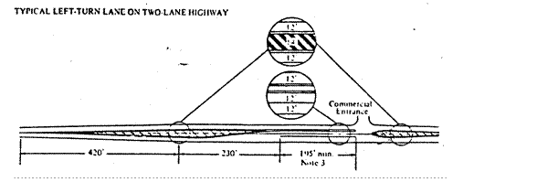 CHAPTER I: DEPARTMENT OF TRANSPORTATION SUBCHAPTER f: HIGHWAYS PART 550 POLICY ON PERMITS FOR ACCESS DRIVEWAYS TO STATE HIGHWAYS SECTION 550.ILLUSTRATION H TYPICAL LEFT-TURN LANE ON TWO-LANE HIGHWAY Section 550.ILLUSTRATION H Typical Left-Turn Lane on Two-Lane Highway